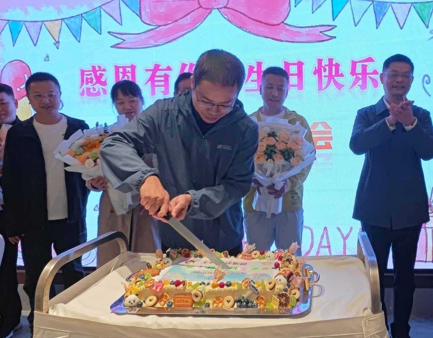 集團黨委副書記、總經(jīng)理吳憲翔點燃生日蠟燭